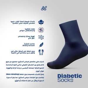 يناسب مقاس من ٣٩ - ٤٥ - جوارب;طبيه لمرضى السكر مصممة خصيصاً لتكون ناعمة وخالية من الدرزات القاسية، مما يقلل من فرصة حدوث التهيجات الناتجة عن مضاعفات مرض السكر.